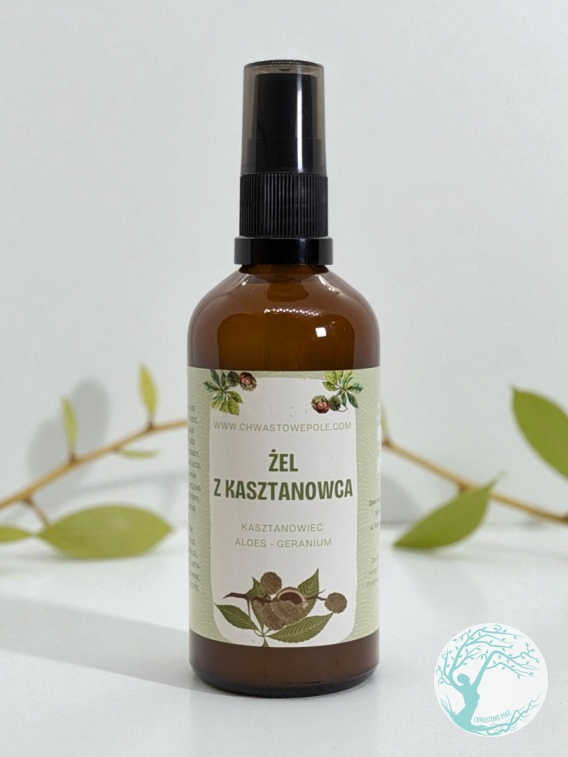 Żel z kasztanowca zaloesem, alantoiną i olejkiem eterycznym z geraniumto kompleksowa formuła, którą stworzyłam z myślą o pielęgnacji skóry z problemami naczyniowymi.